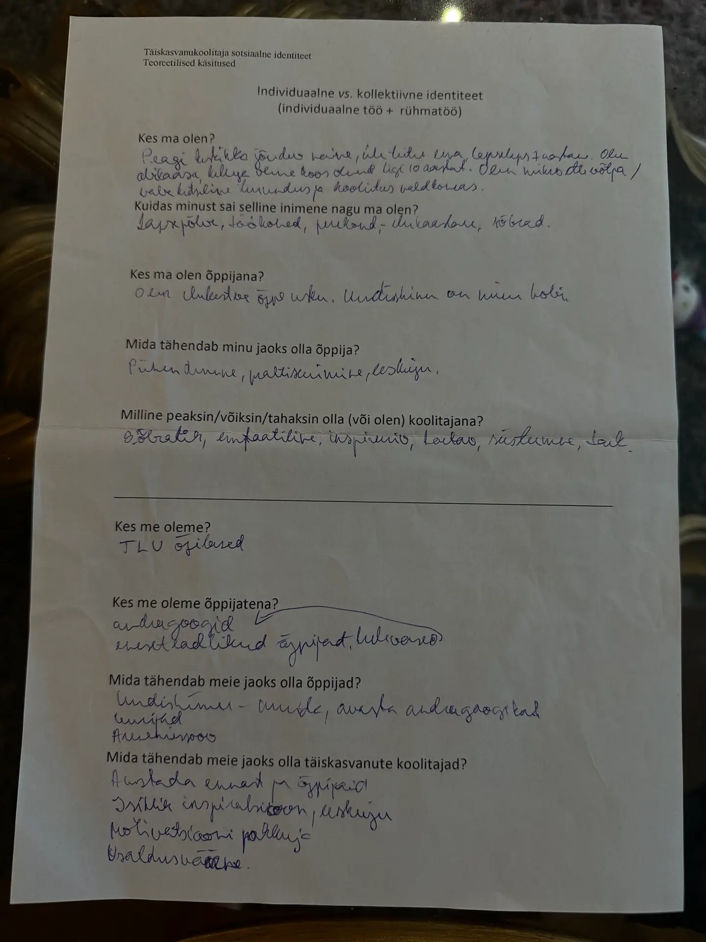 2) Täiskasvanukoolitaja sotsiaalne identiteet (bakalaureusetaseme õppeaine KAN6090.HR)