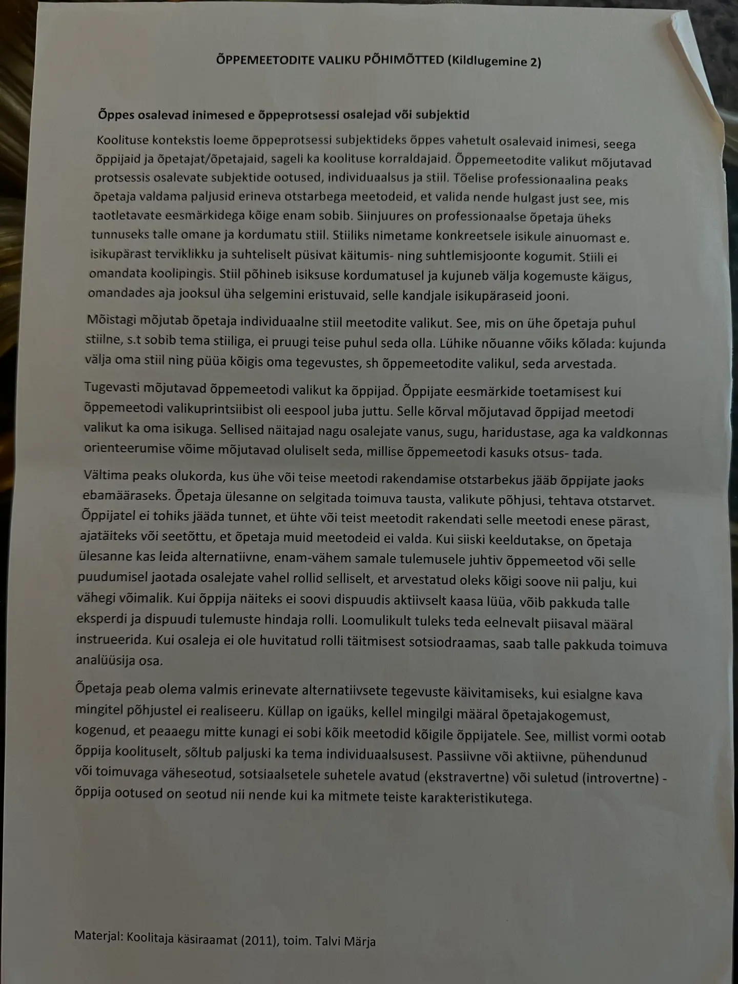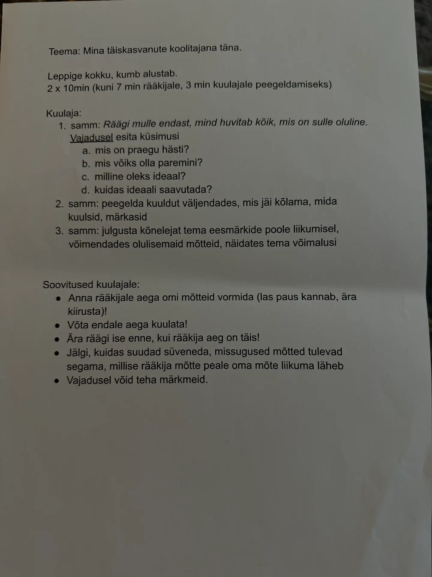 • Reflektiivne lähenemine: Kursuse käigus rõhutati pidevat eneseanalüüsi ja refleksiooni, mis aitas mul paremini mõista enda koolitaja identiteeti.