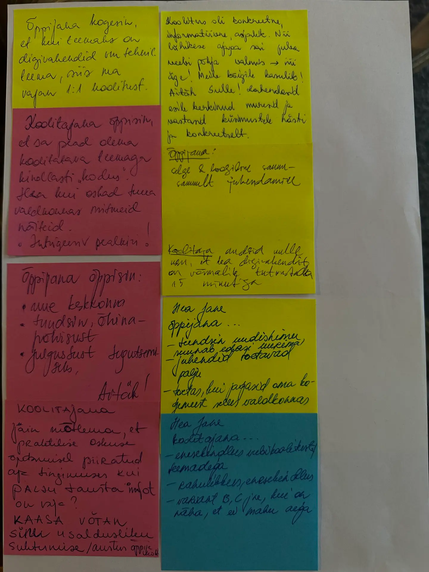 Minu mikrokoolituse tagasisidega saab tutvuda siin galeriis värvilistel märkmelehtedel. Mikrokoolituse õppekavaga saab tutvuda SIIN